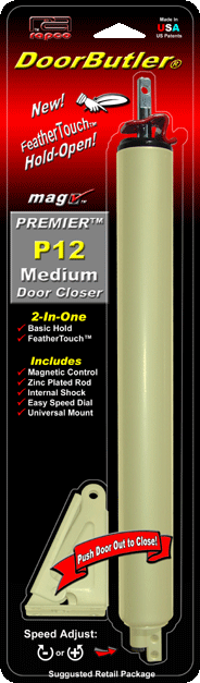 Order From $12.99 P12 is for light to medium doors such as aluminum screen & storm; wood; patio, etc... DoorButler® Premier™ Storm & Screen Door Closer features: