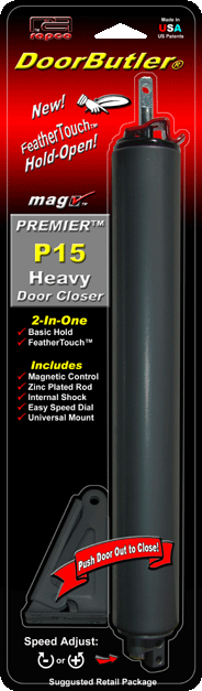 Want... PERIOD." Order From $14.99 P15 is for heavy doors such as steel; fire rated; solid wood; full glass; ornamental wrought iron; etc... DoorButler® Premier™ Storm & Screen Door Closer features: